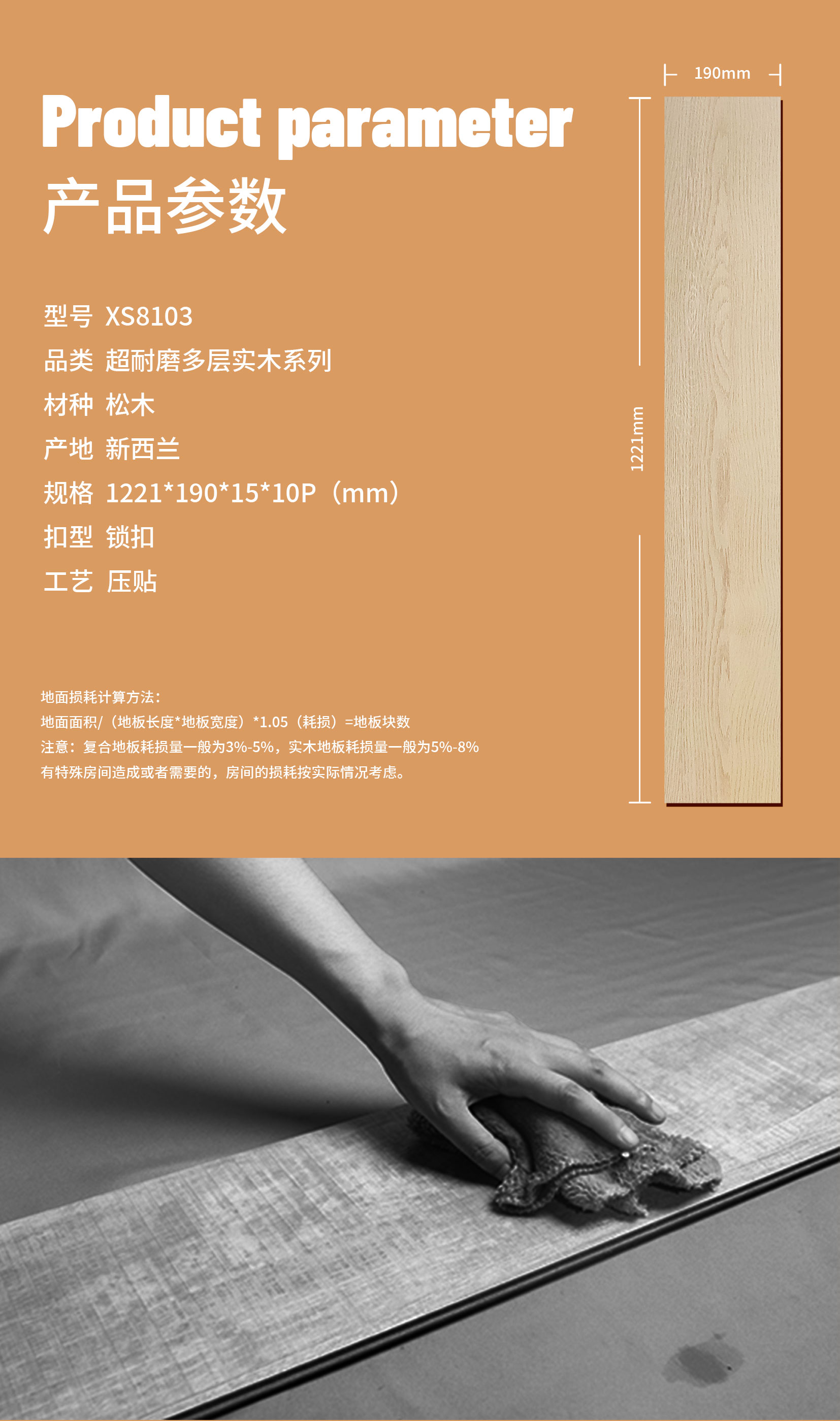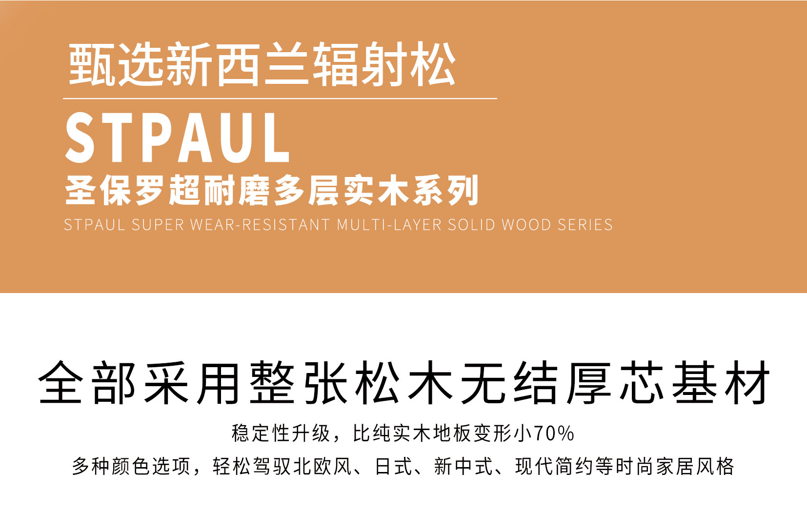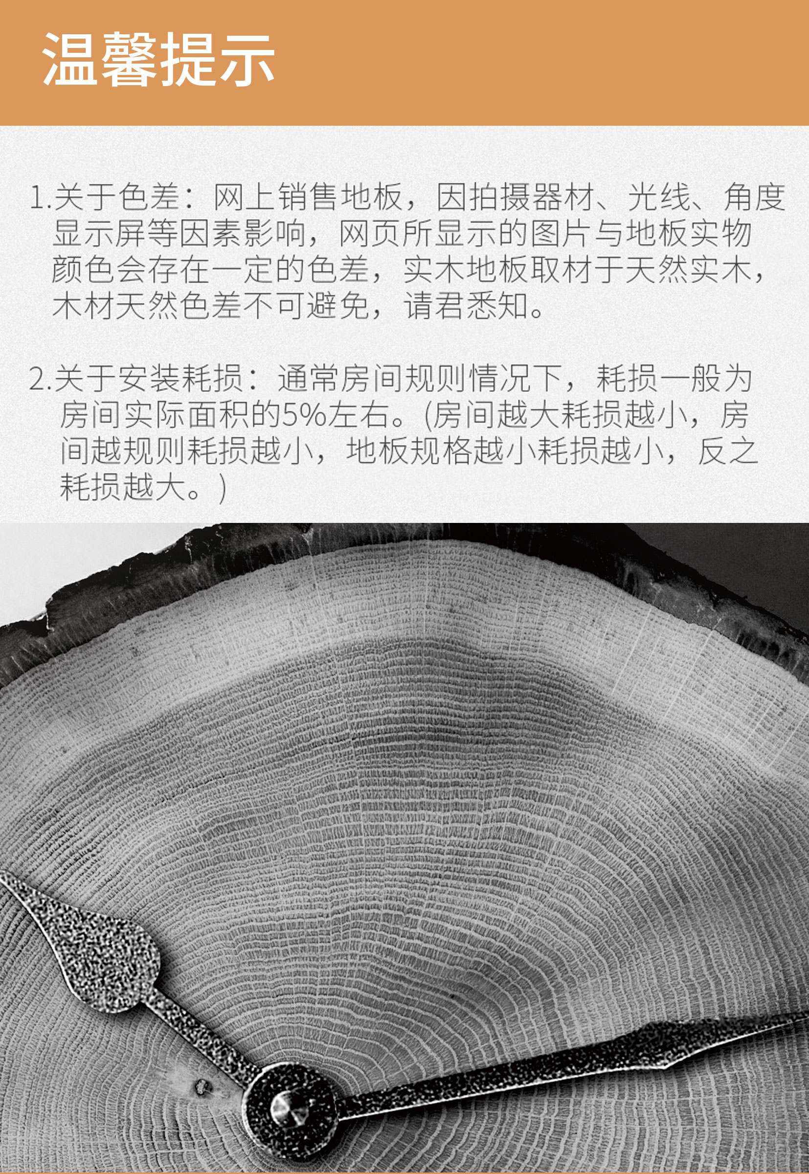 實木優點: | 多層實木地板以縱橫交錯排列的多層板為基材,涂樹脂膠后在熱壓機中通過高溫高壓制作而成。不易變形開裂,干縮膨脹系極小,具有較好的調節室內溫度和濕度的能力,本產品具有多層實木適合地暖特性的同時還具備強化地板的耐磨經用。 |
