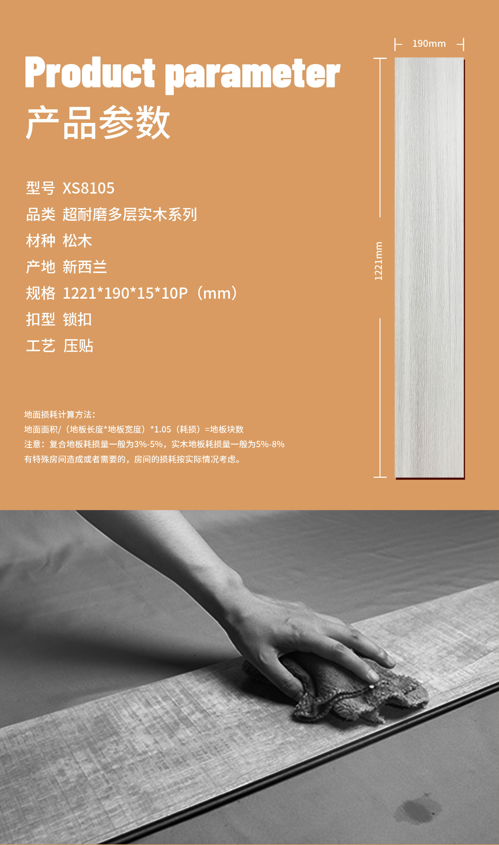 實木優點: | 多層實木地板以縱橫交錯排列的多層板為基材,涂樹脂膠后在熱壓機中通過高溫高壓制作而成。不易變形開裂,干縮膨脹系極小,具有較好的調節室內溫度和濕度的能力,本產品具有多層實木適合地暖特性的同時還具備強化地板的耐磨經用。 |