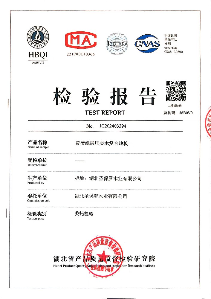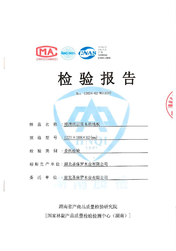 1221*193*15mm超耐磨實木復合地板檢測報告