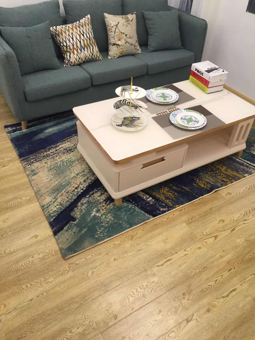 三、不同批次的基材自身可能存在細微的色差,而浸膠耐磨紙在相同或相近的熱壓工藝條件下也會出現(xiàn)細微的色差;地板在熱壓時用的經(jīng)拋光的不銹鋼模板,其光澤度會隨使用時間的延長而降低,使地板表面光澤度呈現(xiàn)出輕微的不同。