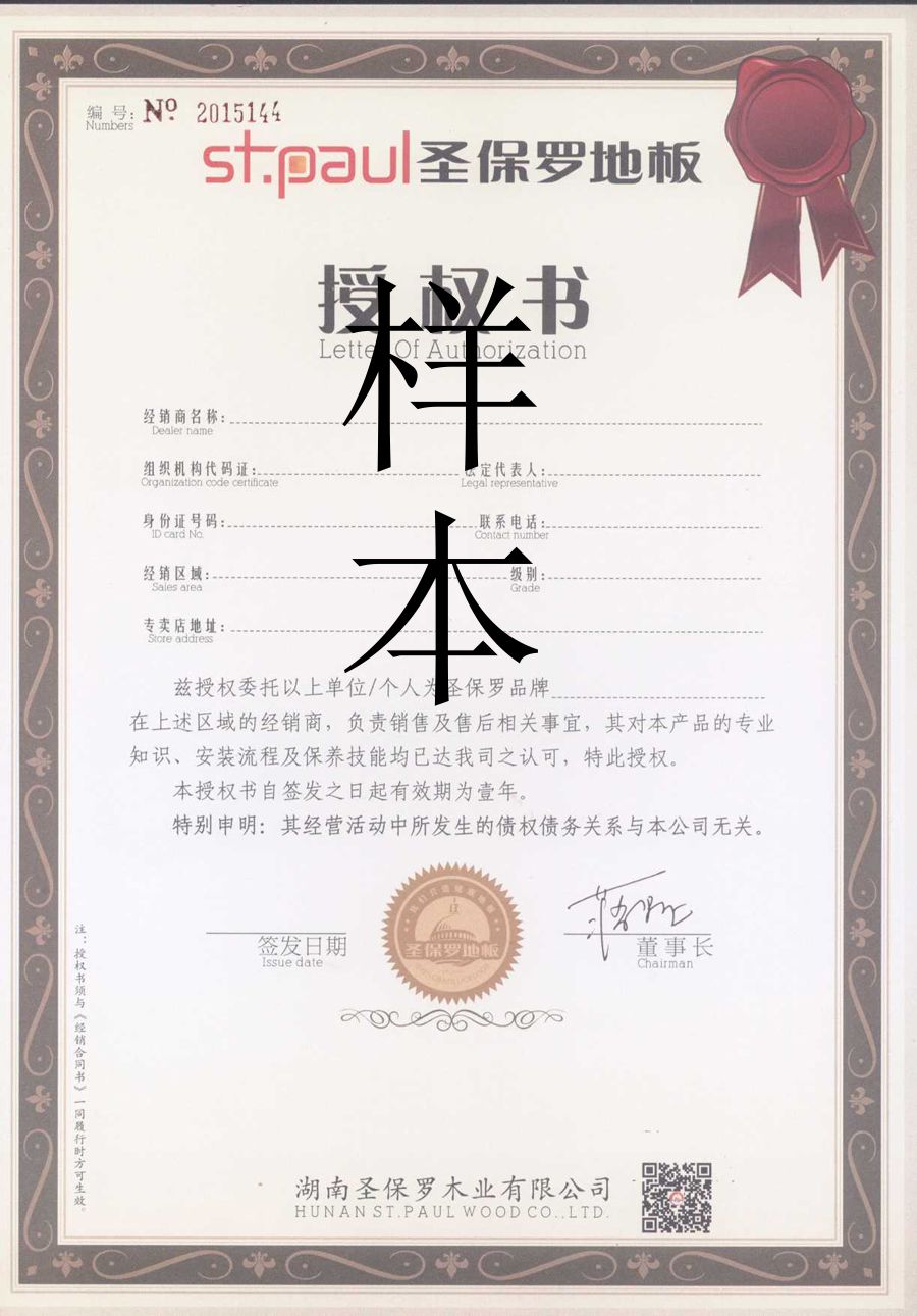 湖南圣保羅木業(yè)有限公司授權(quán)委托各區(qū)域的經(jīng)銷商、專賣店負(fù)責(zé)在各區(qū)域?qū)κケA_品牌授權(quán)范圍內(nèi)的產(chǎn)品的銷售及售后相關(guān)事宜,經(jīng)銷商、專賣店自己收取的各項(xiàng)預(yù)付費(fèi)用(含定金)是經(jīng)銷商的個(gè)人行為,所造成的一切后果與湖南圣保羅木業(yè)有限公司沒(méi)有任何關(guān)系!各經(jīng)銷商、專賣店經(jīng)營(yíng)活動(dòng)中產(chǎn)生的債權(quán)、債務(wù)關(guān)系也與本公司無(wú)關(guān)!