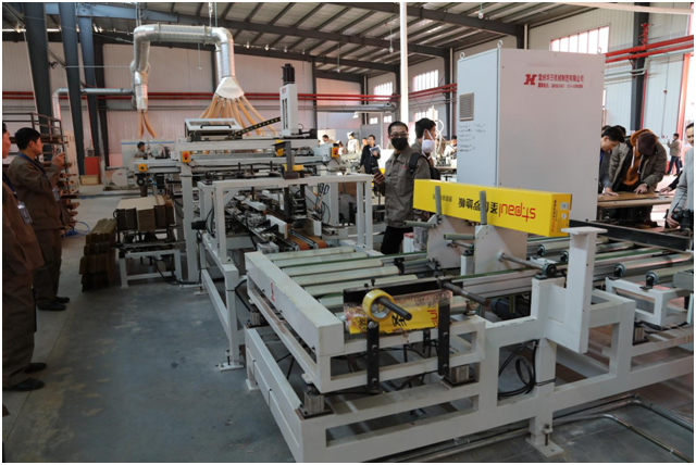 熱壓區:構成木地板的各層材料在這里熱壓成型