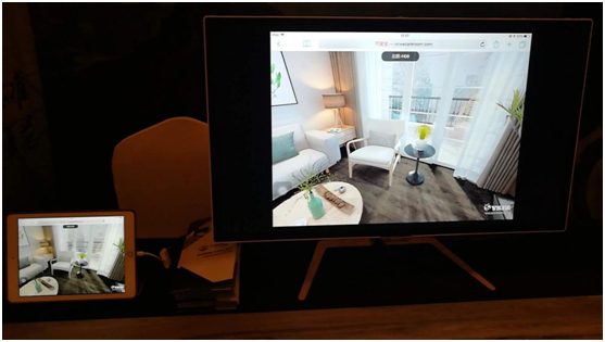 由于現場不方便布置VR儀器,采用了平板電腦加超清顯示器演示效果