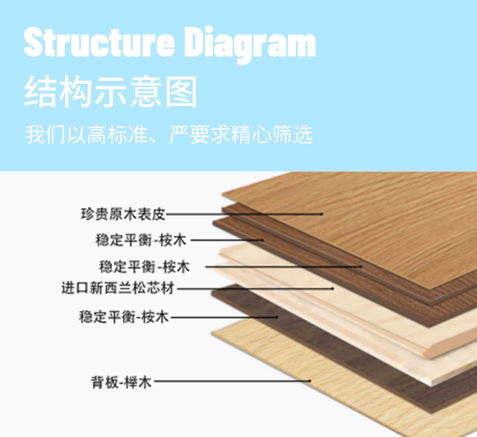 實木優點: | 產品本身采用天然的珍貴樹種作為地板的表板,楊木、松木等軟木質樹種作為芯、背板,加之三層結構縱橫交錯疊壓而成,使其木材應力大大減小,不但有效控制了木材的內應力而且保證了產品的穩定性。 三層實木復合地板的結構合理,充分考慮了木材的天然品性,通過人為利用高端技術進行處理,使之達到產品性能的兼容性,即同時擁有實木地板的自然紋理和多層地板的穩定性又能夠達到強化地板的耐磨、抗壓性能; 由于三層實木復合地板具有舒適、自然溫馨、冬暖夏涼,抵抗自然輻射、高貴典雅、綠色環保等特點,不僅倡導低碳生活,而且滿足了消費者的健康需求。現成為了廣大消費者備受親賴的地面鋪裝材料。 三層實木復合地板融匯了高、精、尖的科技技術,是高科技時代的產物。 |